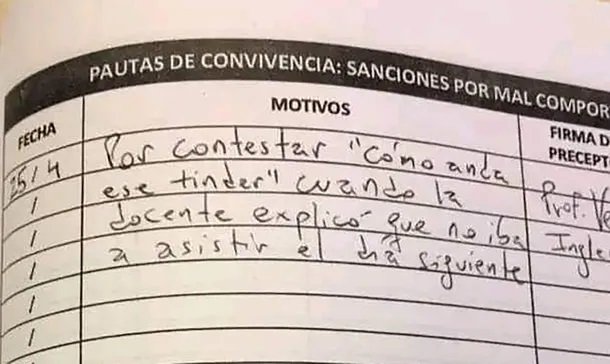 Como le ocurrió al alumno de una escuela que respondió inadecuadamente al anuncio realizado por su profesora de inglés, con relación a que estaría ausente al día siguiente.